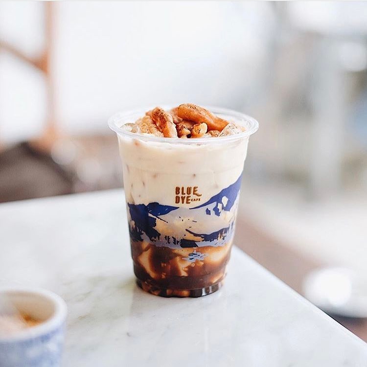 Chai latte with Tofu pudding จากร้าน Blue Dye Cafe สุขุมวิท 39 เมนูนี้ ใช้ Chai Tea โปะด้วยเต้าฮวย แล้วโรยด้วยปาท่องโก๋ แล้วเสริฟแบบเย็น ให้อารมรณ์คล้ายทานเต้าฮวยเย็น