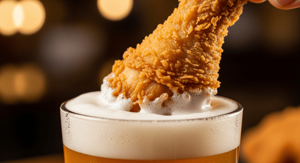 นี่คือหน้าที่สำคัญที่สุดของเครื่องดื่มแอลกอฮอล์ในระหว่างมื้ออาหารครับ โดยเฉพาะเครื่องดื่มที่มีความซ่าหรือมีความเป็นกรดสูง ผมอยากให้คุณผู้อ่านลองนึกภาพตามผมนะครับ ลองนึกถึงเวลาที่คุณกำลังทาน ไก่ทอด ที่มีความกรอบอร่อย แต่พอทานไปได้สักสองสามชิ้น คุณจะเริ่มรู้สึกว่ามีไขมันและความมันเคลือบอยู่ในปาก ทำให้ความอร่อยเริ่มลดลงเรื่อยๆ แต่พอได้จิบ เบียร์ เย็นๆ ที่มีความซ่าสูงเข้าไป ฟองอากาศในเบียร์จะทำหน้าที่เหมือน “ไม้กวาด” ที่กวาดเอาไขมันที่ตกค้างออกไปจากลิ้นและเพดานปากของคุณ ทำให้คำต่อไปที่คุณทานรู้สึกเหมือนเป็นคำแรกที่กรอบอร่อยและไม่เลี่ยนเลย