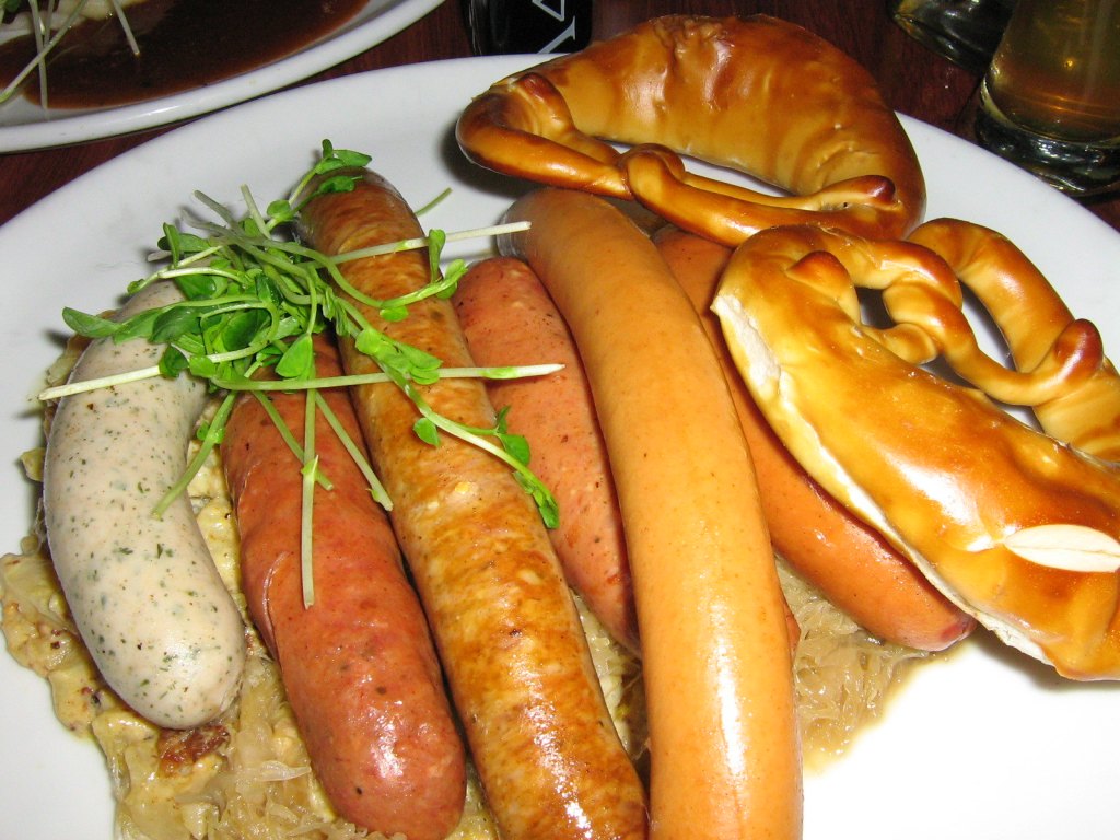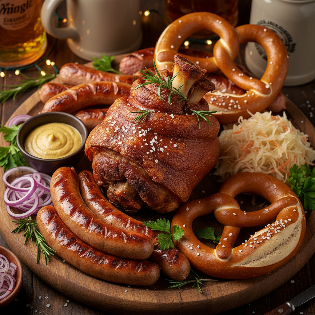 - ไส้กรอกเยอรมัน (Bratwurst): จัดเซ็ตไส้กรอกรวมรสต่างๆ เสิร์ฟพร้อมมัสตาร์ดหลากหลายชนิด และขนมปังอบร้อนๆ