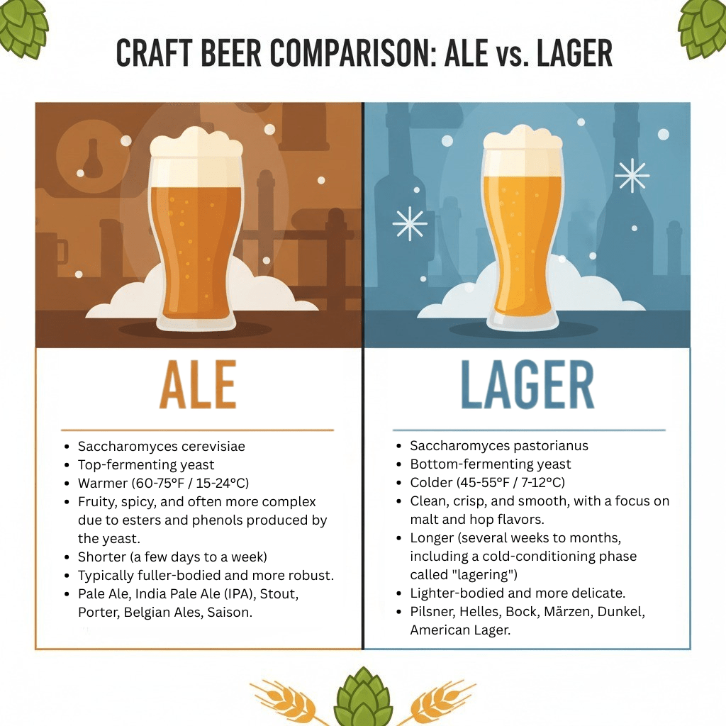 แต่ถ้าจะให้แบ่งประเภทที่สำคัญที่สุดจริงๆ ก็คงหนีไม่พ้น “ยีสต์” ครับ เพราะยีสต์คือตัวแบ่งเบียร์ออกเป็น 2 ตระกูลหลักๆ นั่นก็คือ เบียร์ประเภทเอล (Ale) ที่หมักในอุณหภูมิสูงและให้กลิ่นที่ซับซ้อน กับ เบียร์ประเภทลาเกอร์ (Lager) ที่หมักในอุณหภูมิต่ำและให้รสชาติที่สะอาด ดื่มง่าย