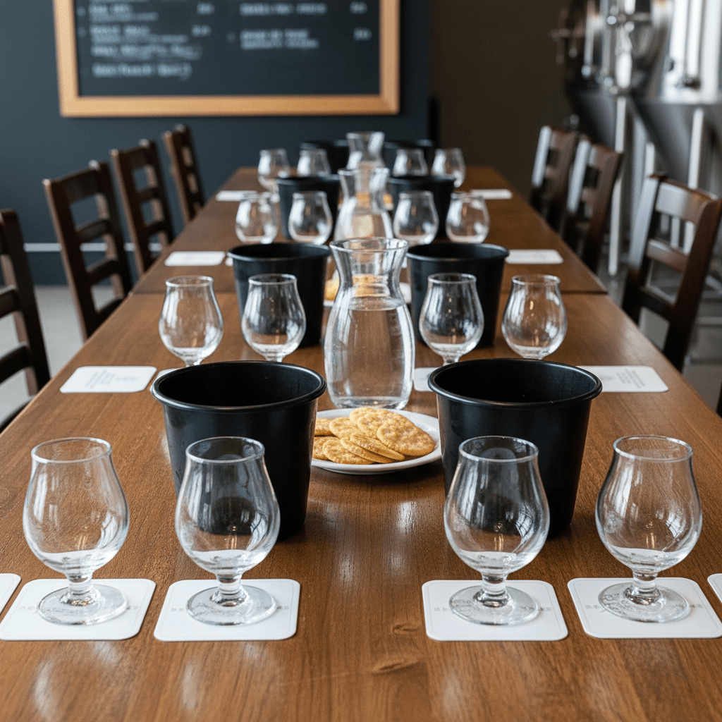 - ตัวล้างปาก: เตรียมน้ำดื่มไว้ให้เยอะๆ (สำหรับล้างปากและลดระดับแอลกอฮอล์) และอาจมีแครกเกอร์หรือขนมปังรสจืดเพื่อล้างรสชาติ