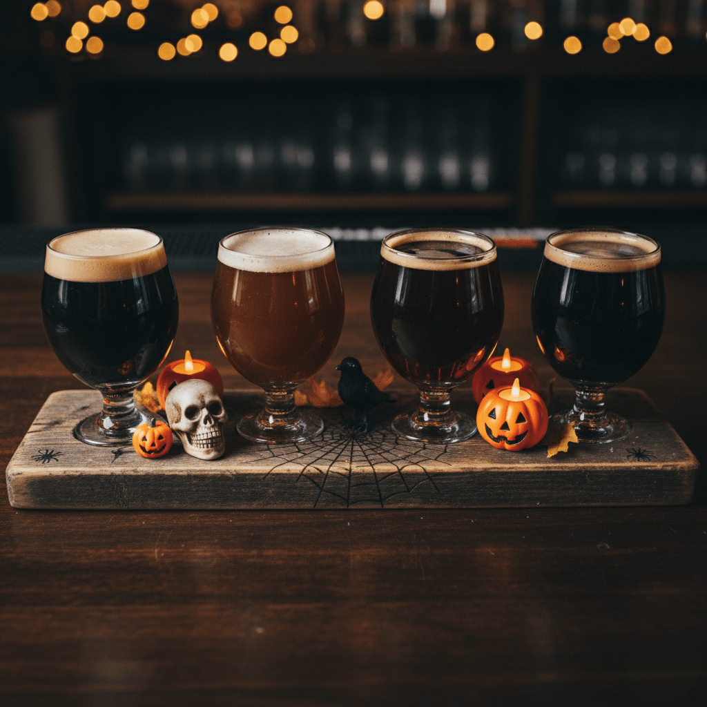 คอนเซ็ปต์ง่ายๆ คือการจัดเซ็ตชิมเบียร์ 4 แก้วเล็ก ที่มีสีเข้มหรือมีรสชาติซับซ้อนตามธีมสยองขวัญ อาจประกอบด้วย Stout ที่เข้มเหมือนหลุมศพ, Porter ที่มีกลิ่นควันนิดๆ เหมือนหมอกยามค่ำคืน, Black IPA ที่ขมลึกซ่อนเร้น, และ Pumpkin Ale ที่ให้ความรู้สึกของเทศกาลอย่างเต็มที่ ตั้งชื่อให้มันดูน่ากลัวนิดๆ อย่าง “Flight of the Undead” หรือ “The Midnight Brews”